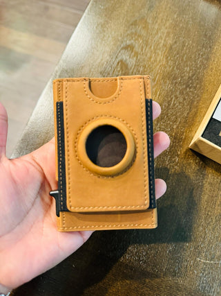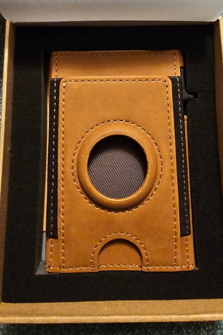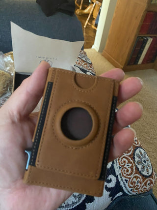 NNature LoverVerified BuyerQuality Wallet" This has the iPhone "Air Tag" holder. So if you have one, this is perfect wallet for you! It's made with high quality suede material. Comes in a nice Gift Box . It comes with the air tag protection cover. And it will fit in the front pants pocket , that's how versatile it is. I absolutely love it."